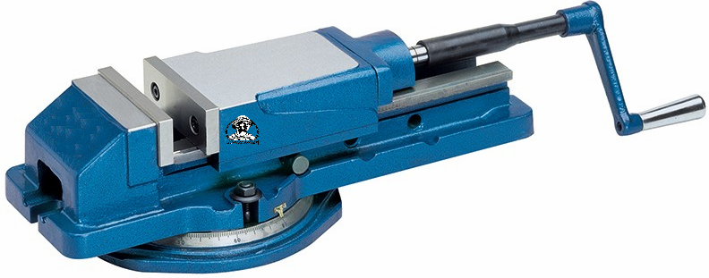 Morza mecánica. Base giratoria. Mordazas de acero pulidas y endurecidas, reemplazable. Husillo recubierto. Tuerca de husillo de bronce, forjada.